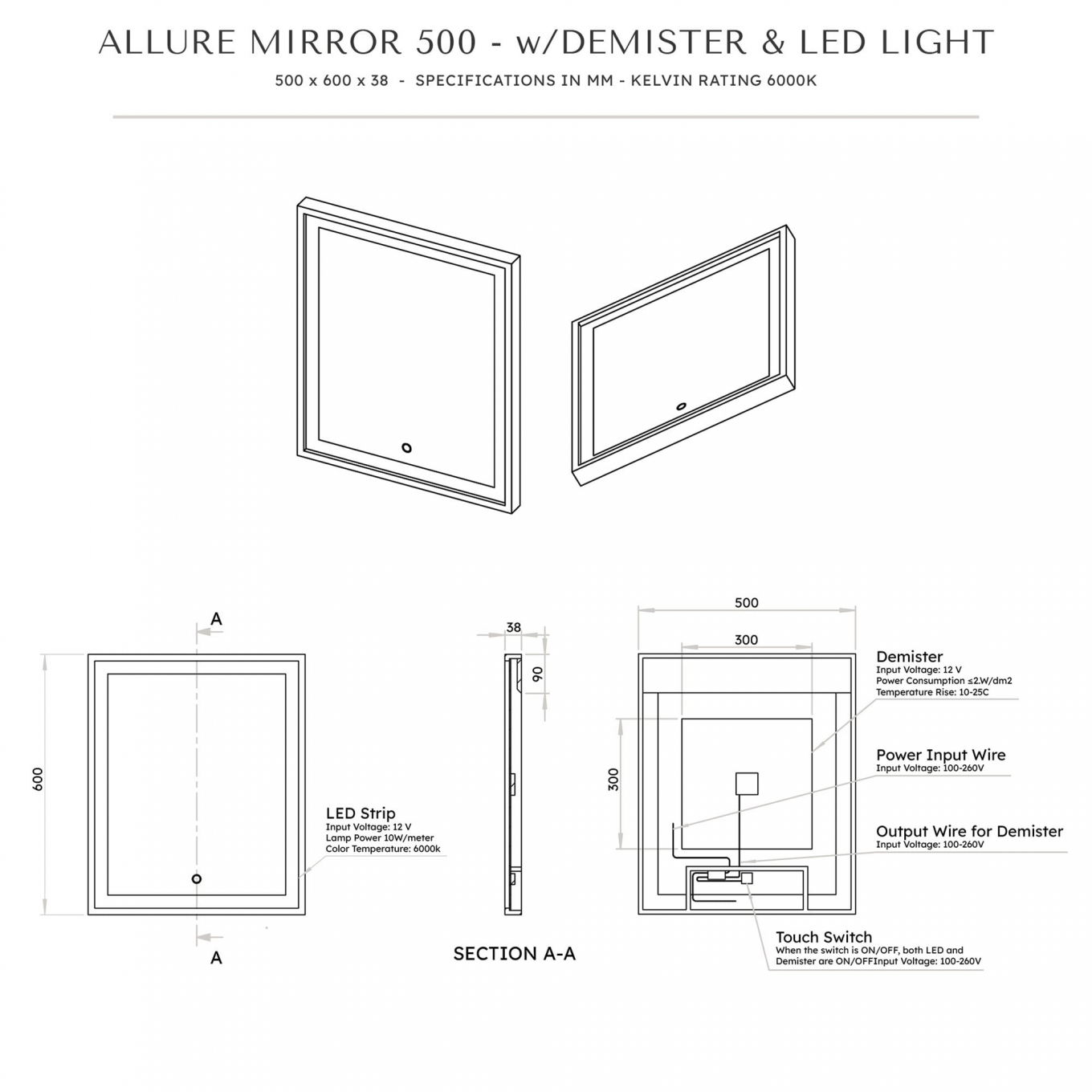 Allure Solid Surface Stone Resin Backlit & Demister Mirror 500