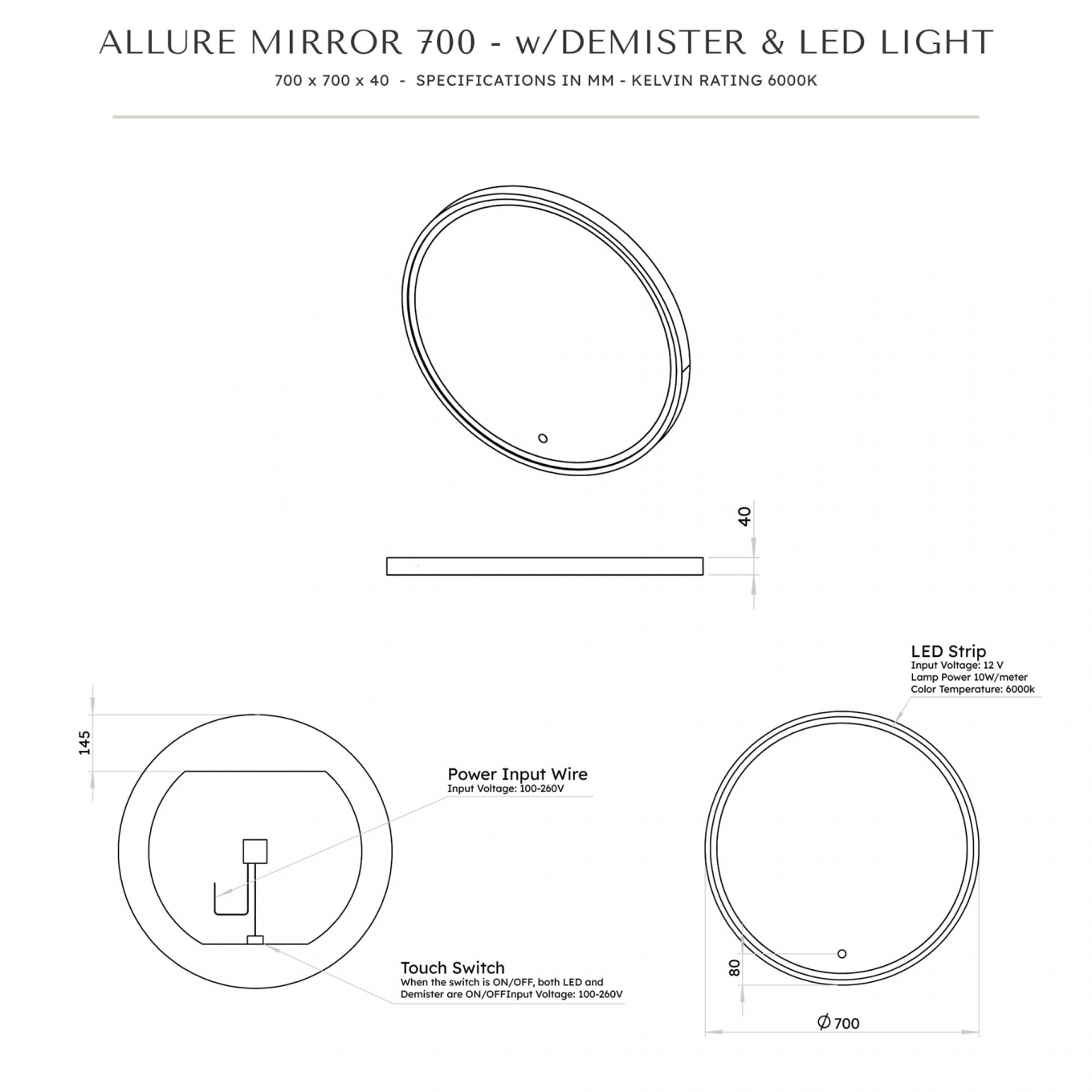 Allure Solid Surface Stone Resin Backlit & Demister Mirror 700