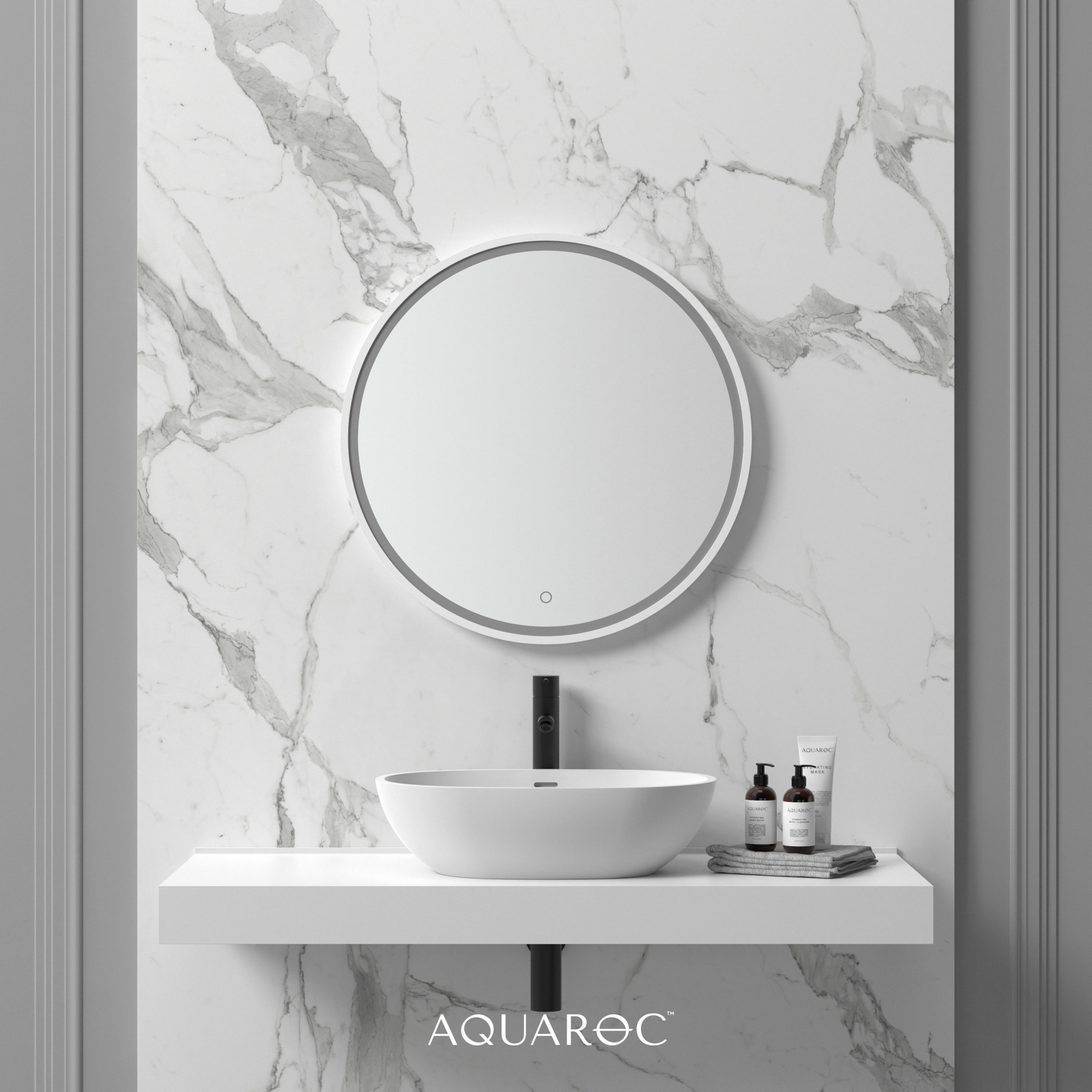 The exclusive backlit & demister Allure mirror is a truly unique piece of craftsmanship & technology. Providing a luxurious feel to your interior and made from our signature Aquaroc solid surface material, this design features a de-mist function that ensures your mirror always stays clear and sparkling.