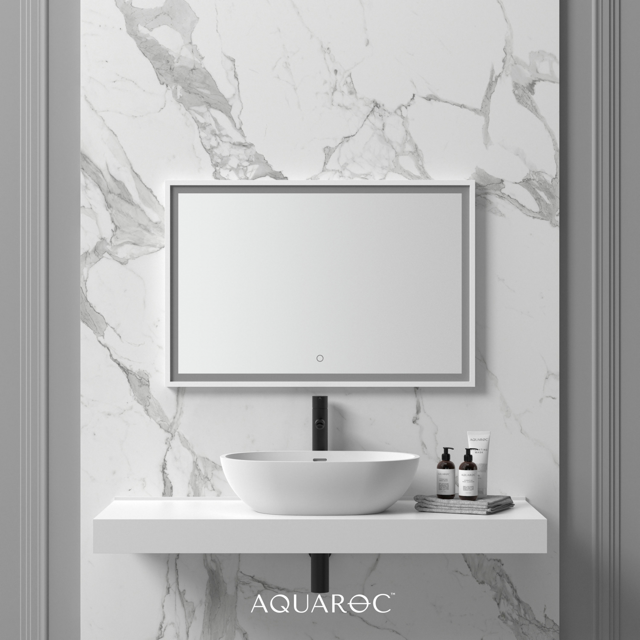 The exclusive backlit & demister Allure mirror is a truly unique piece of craftsmanship & technology. Providing a luxurious feel to your interior and made from our signature Aquaroc solid surface material, this design features a de-mist function that ensures your mirror always stays clear and sparkling.