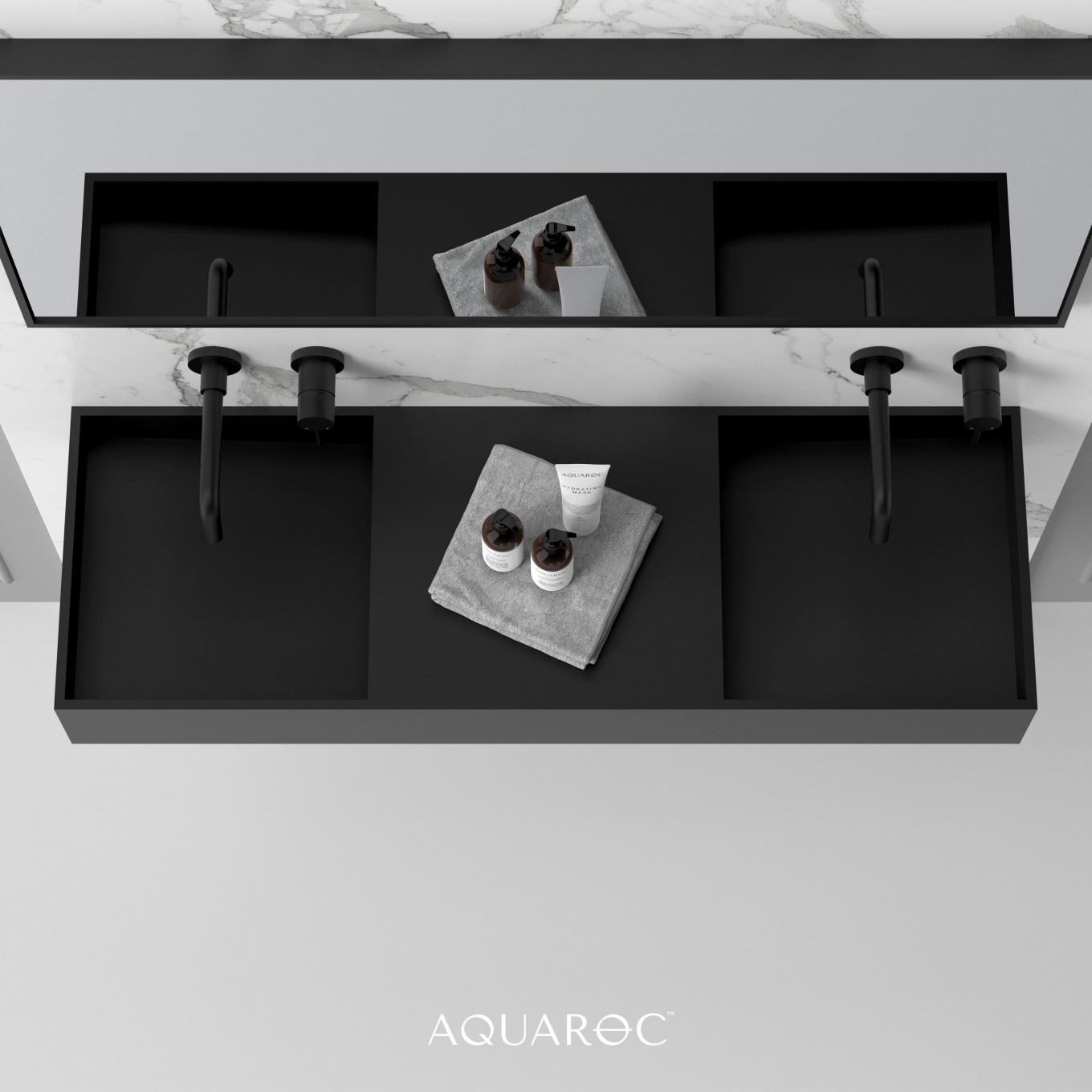Atlante Solid Surface Stone Resin Wall Hung Double Basin Matte Black 1200