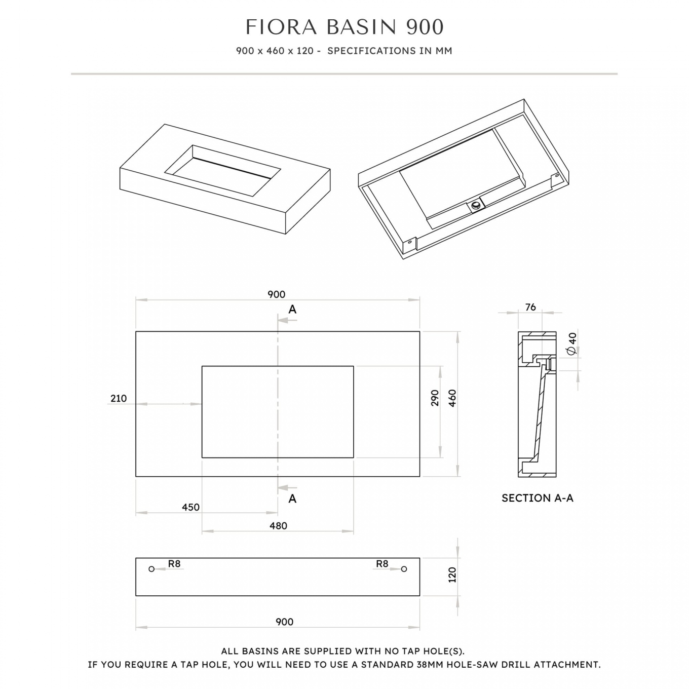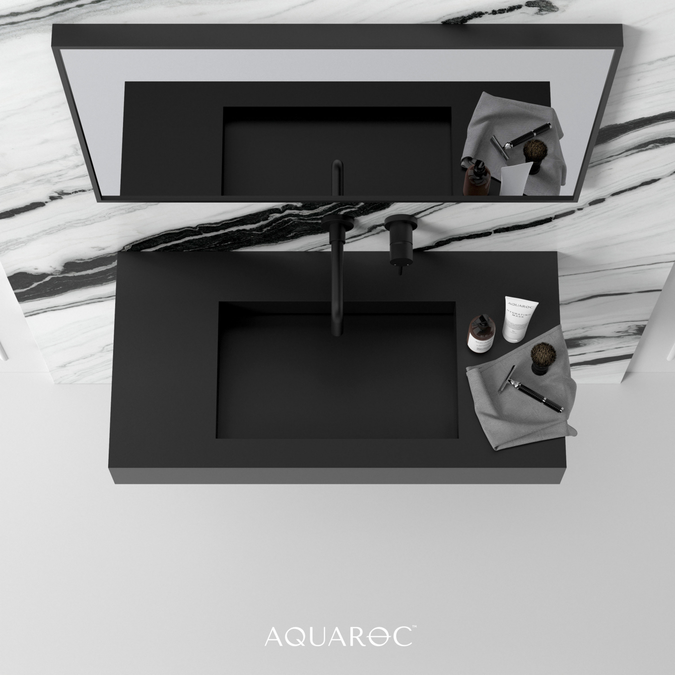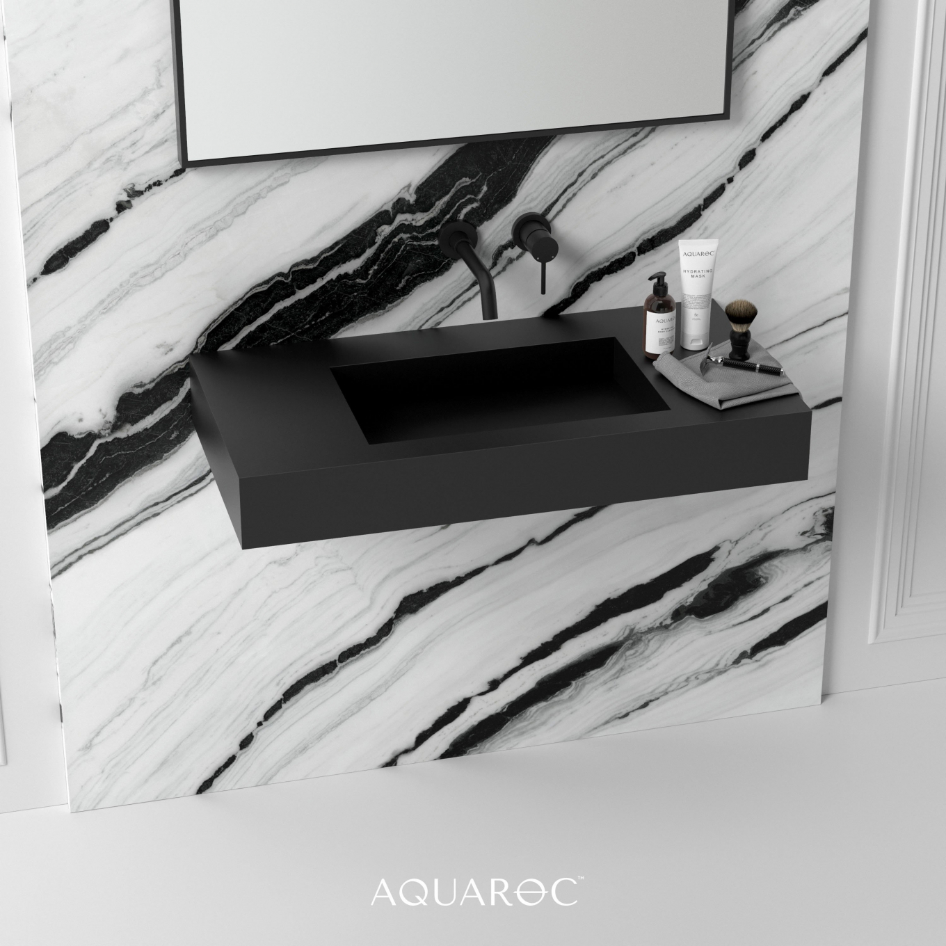 Fiora Solid Surface Stone Resin Matte Black Wall Hung Basin 900