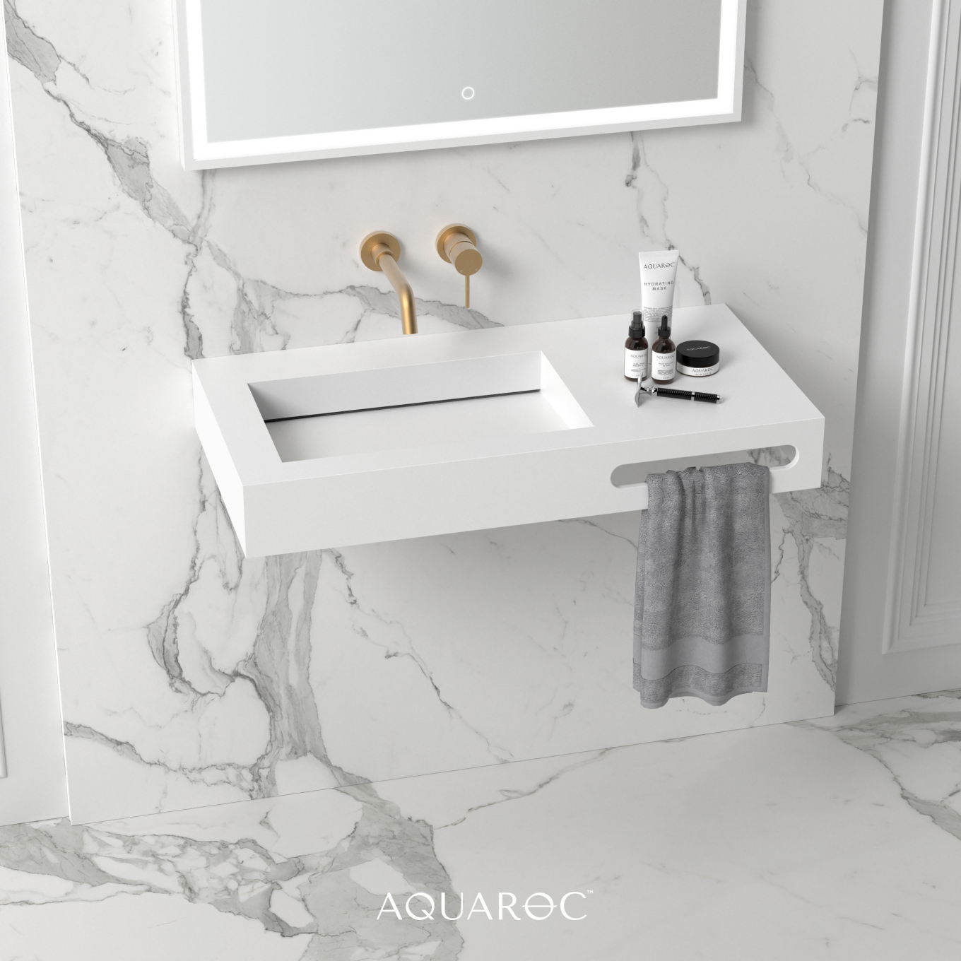 Fiora Solid Surface Stone Resin Wall Hung Basin 900 towel hole