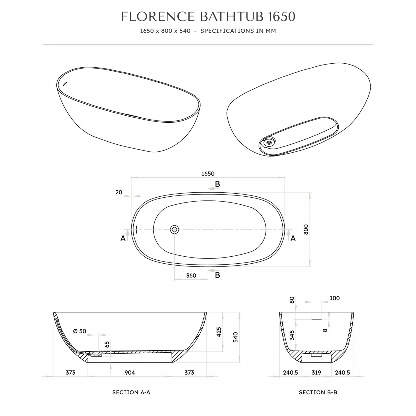Contemporary, elegant and undeniably eye-catching, the Florence is an attractive addition to any bathroom interior. Made from our luxurious, high performing, solid surface, stone resin material, Florence is smooth and durable. Enriched with the finest quality minerals and combined with superior quality stone resin, our natural stone baths are guaranteed to stand the test of time and our revolutionary material will insist upon an outstanding bathroom experience. Our beautiful Florence is a timeless choice that cannot be rivalled. Choose the black and white edition to combine modern luxury with classic elegance. The external black surface adds a striking and contemporary touch to any bathroom whilst the internal white keeps it minimalist and classic.