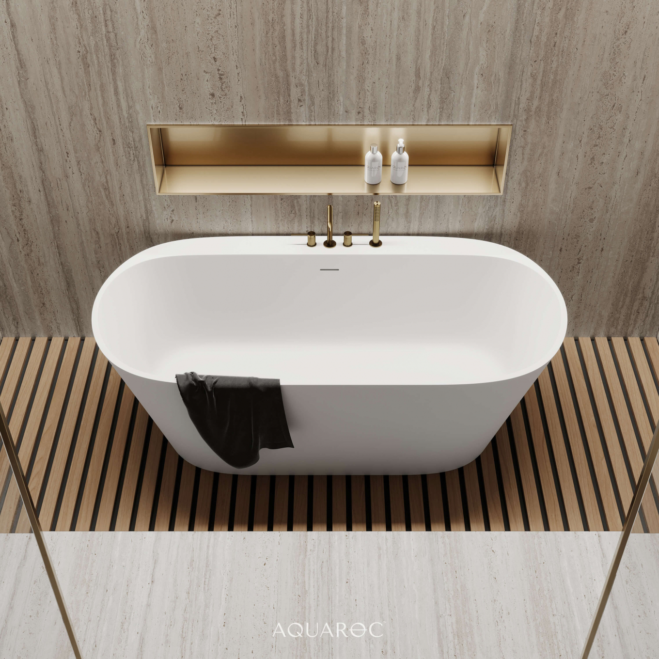 Handcrafted by our in-house artisans to be both sophisticated and comfortable, picture the elegant Aquaroc Invictus freestanding bathtub in your abode.