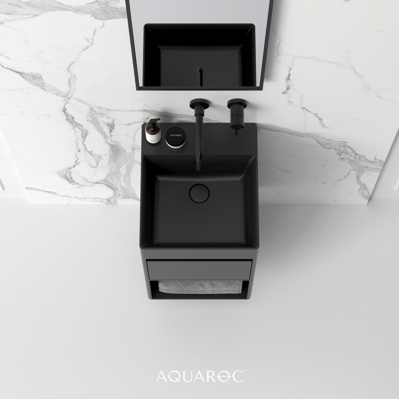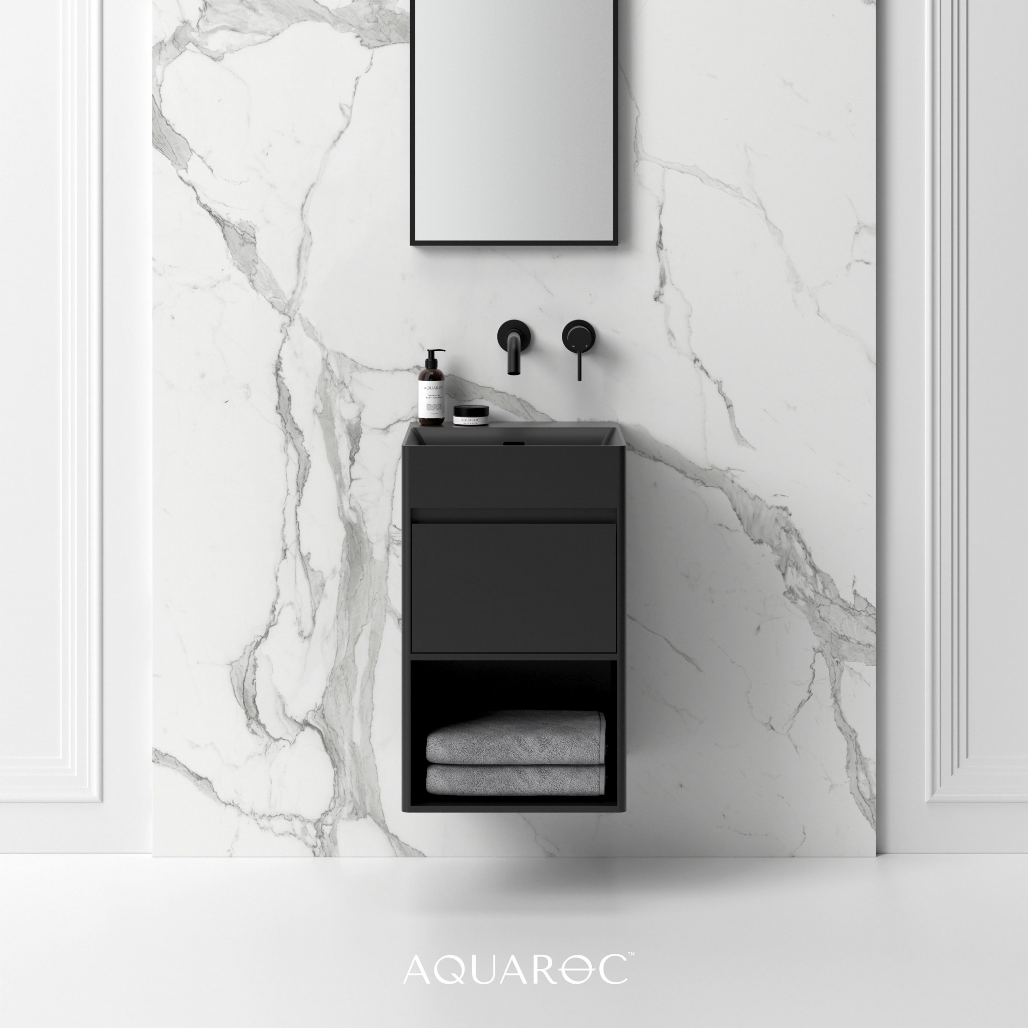 Monza Solid Surface Stone Resin Wall Hung Vanity Unit Matte Black 400