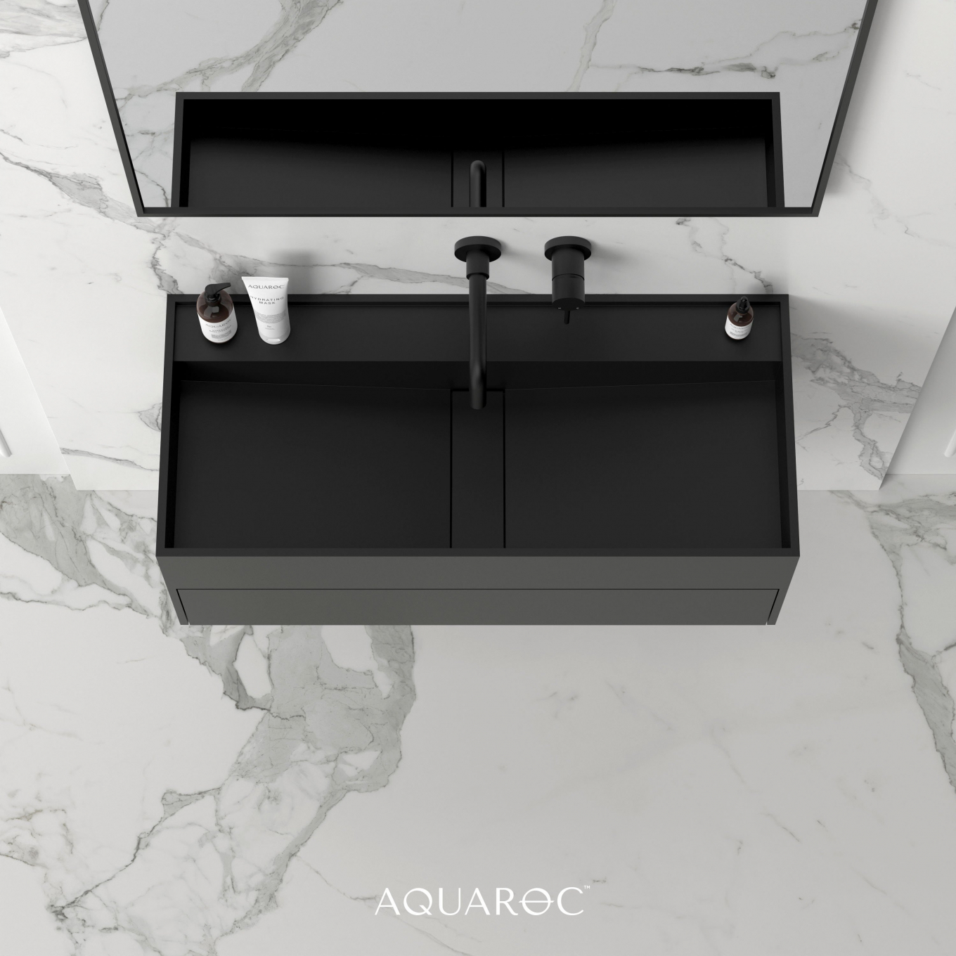 The exquisite Nero vanity unit is entirely made from our signature stone resin material. Our team of in-house skilled craftsmen ensure each piece is finished to Aquaroc's exemplary standards. This innovative design is effortlessly stylish and would be a phenomenal addition to any bathroom space.