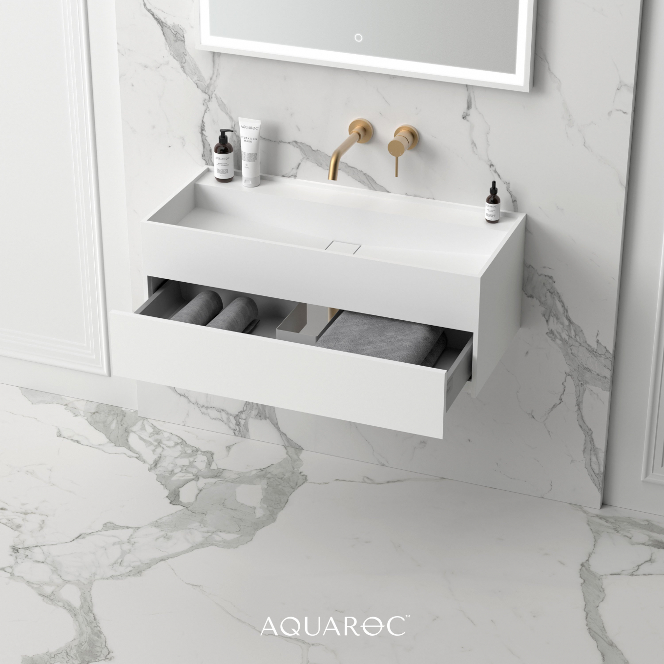 The exquisite Nero vanity unit is entirely made from our signature stone resin material. Our team of in-house skilled craftsmen ensure each piece is finished to Aquaroc's exemplary standards. This innovative design is effortlessly stylish and would be a phenomenal addition to any bathroom space.
