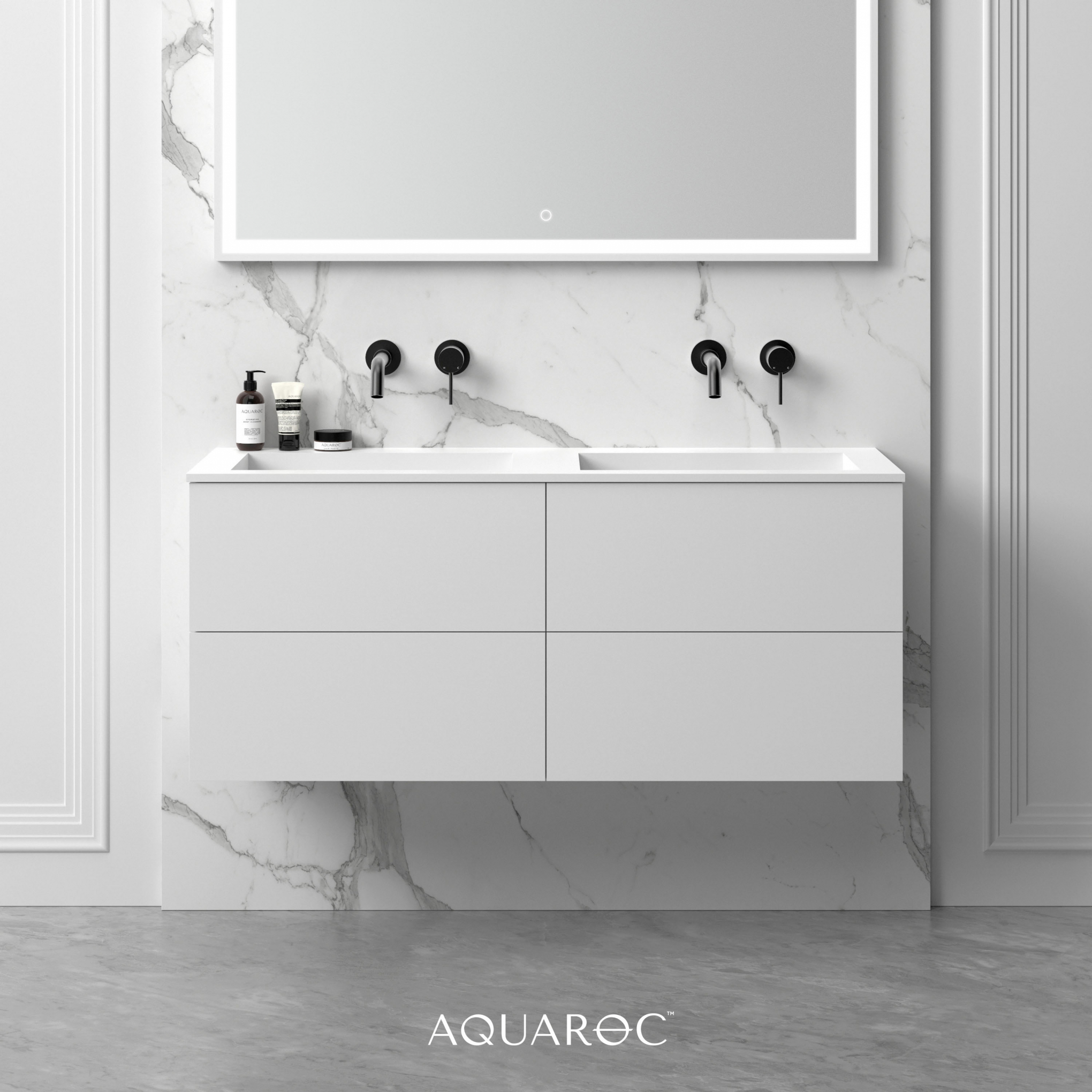 Inspired by modern minimalism, the One wall hung double vanity ensures a luxurious lifestyle with a contemporary touch. Each model is carefully designed to incorporate stylish storage options.