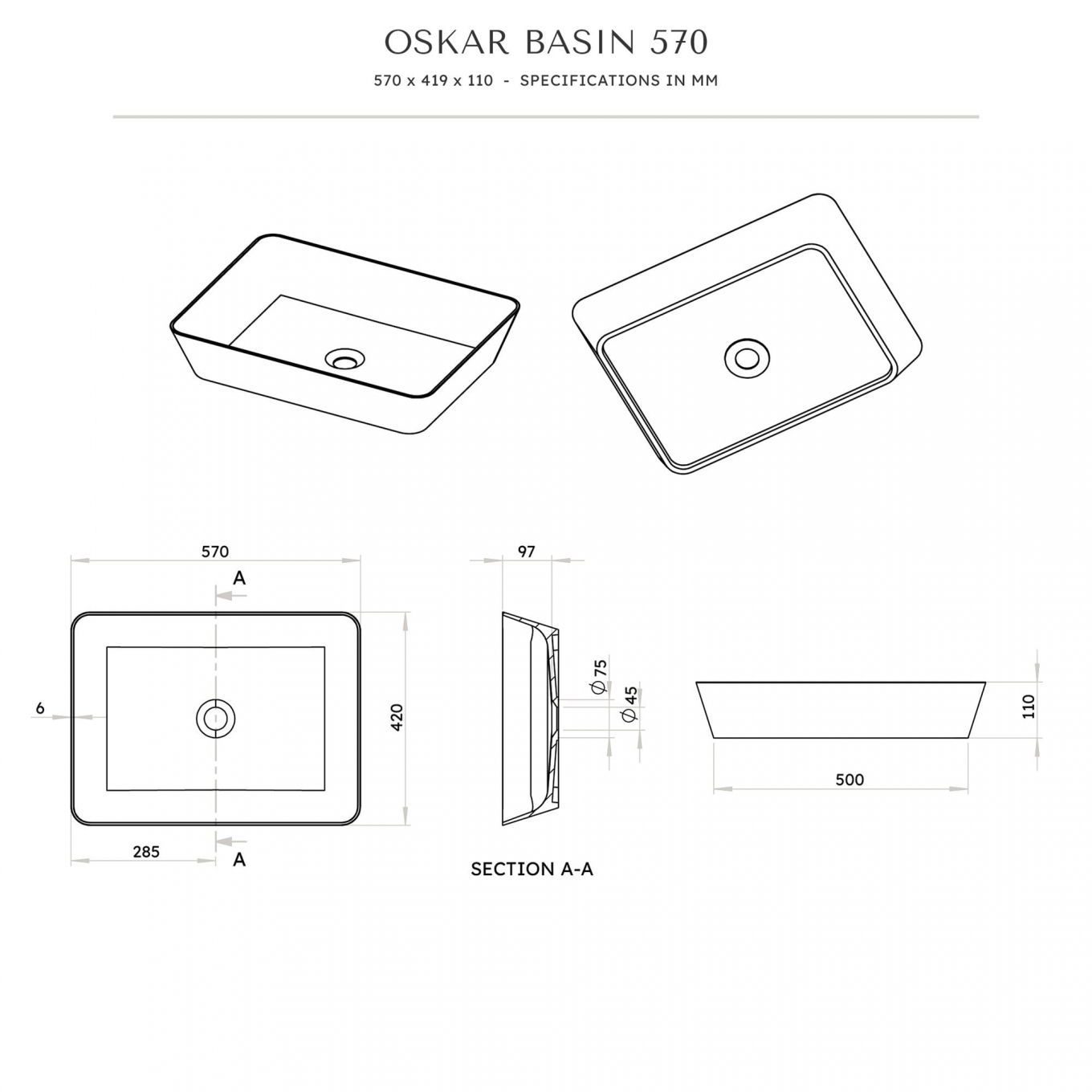 Oskar Solid Surface Stone Resin Counter Top Basin 570