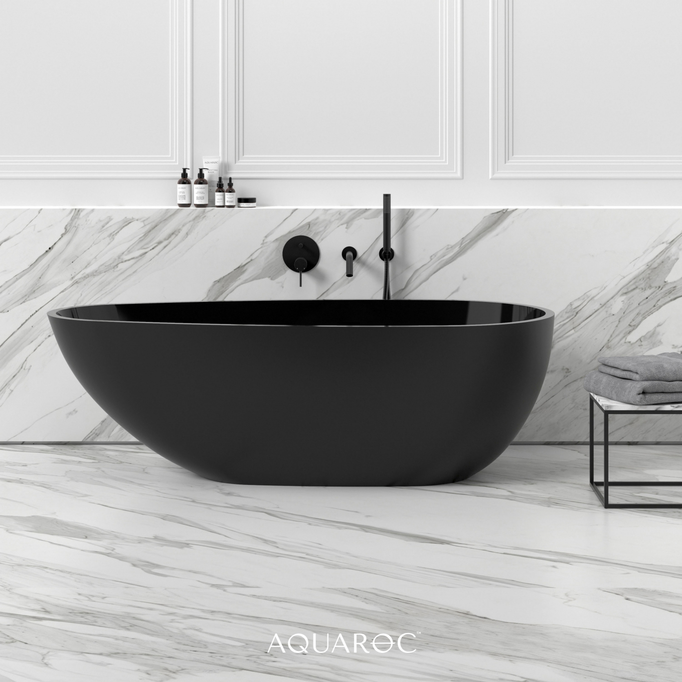 Uovo Solid Surface Stone Resin Matte Black Freestanding Bath 1700