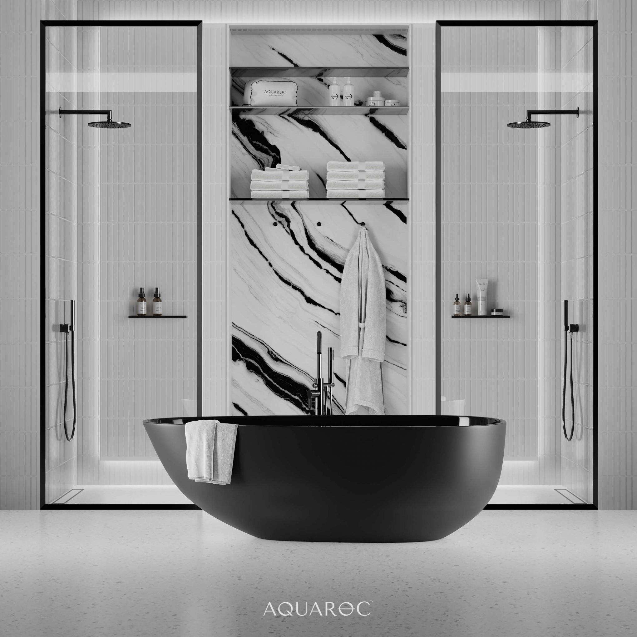 Handcrafted by Aquaroc's master artisans, the stunning Uovo freestanding bath cuts an egg silhouette in a matte and polished black finish. Instantly eye-catching, the design is undeniably chic and alluring.
