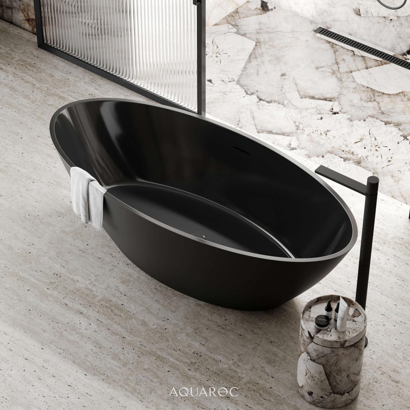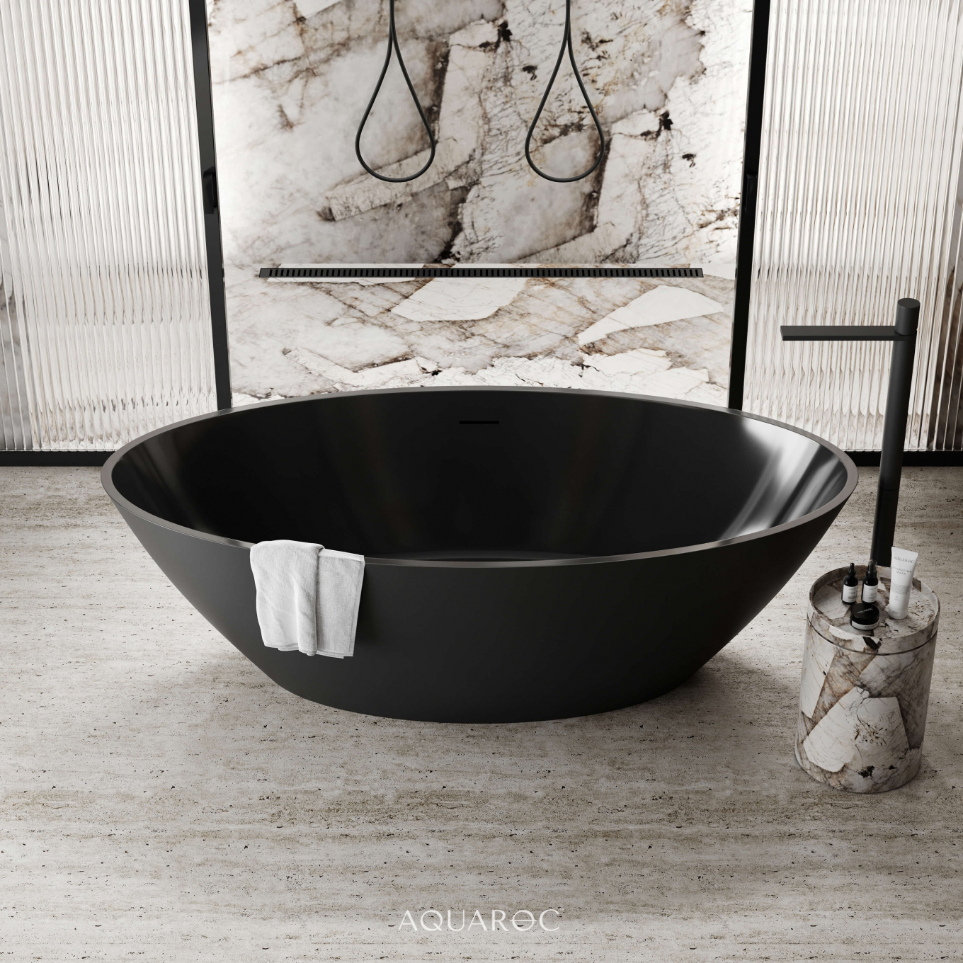 Zenith Solid Surface Stone Resin Matte Black Freestanding Bath 1750